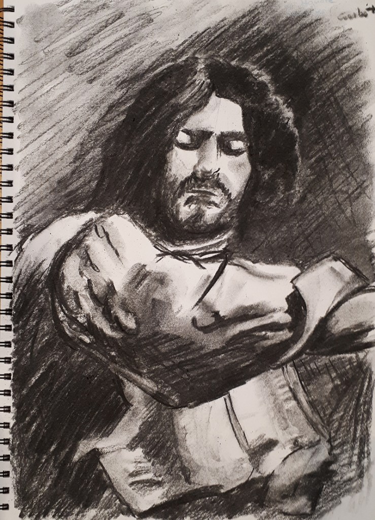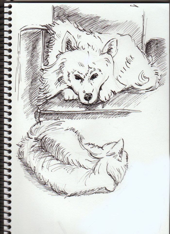 Drawing Arnie, our dog. Sometimes, he keeps still long enough.